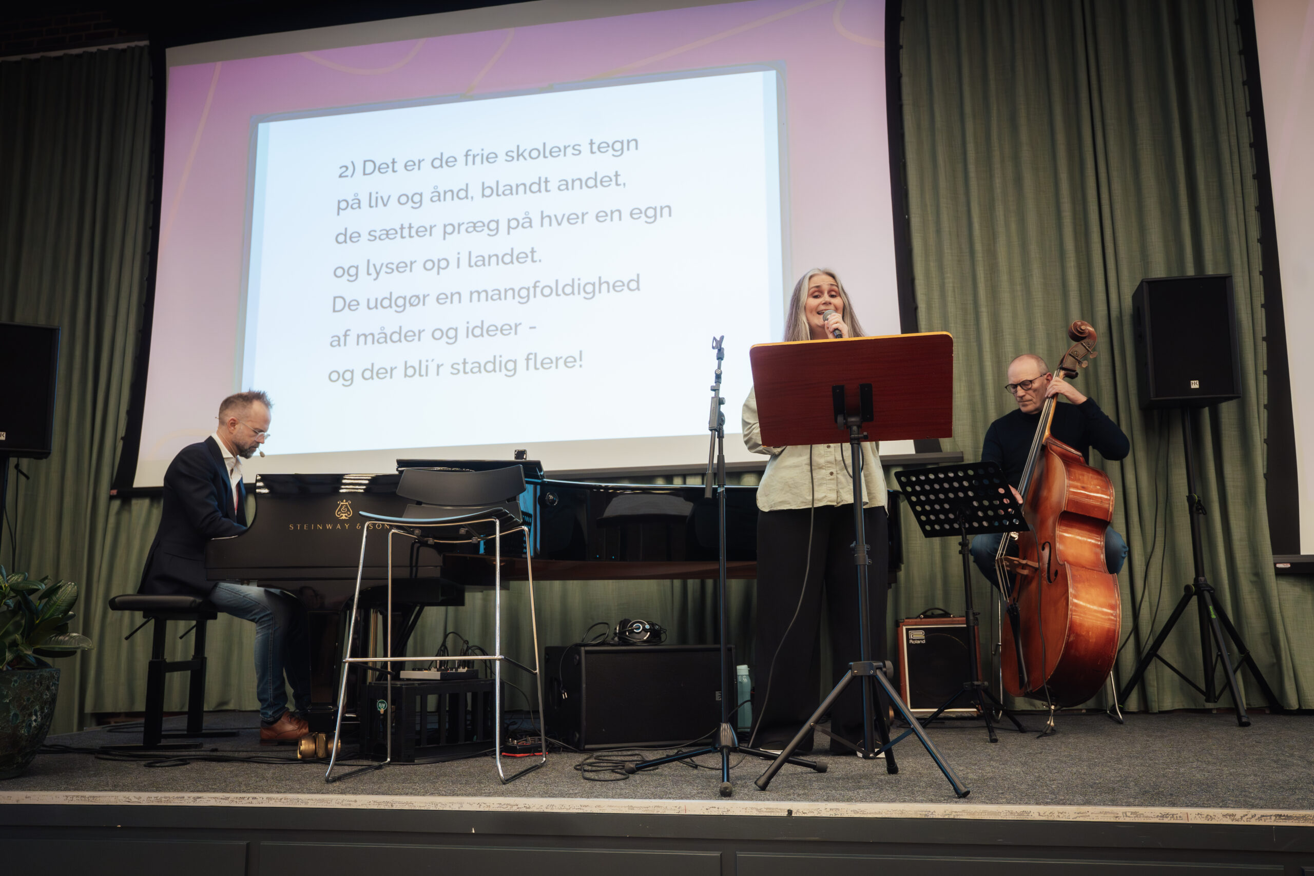 Der var uropførelse af sangen ‘Der er et sted, hvor der er fred’ – skrevet af Bertel Haarder til de frie skoler. Han kunne desværre ikke selv være til stede, men han sendte en varm videohilsen fra Serup Forsamlingshus.