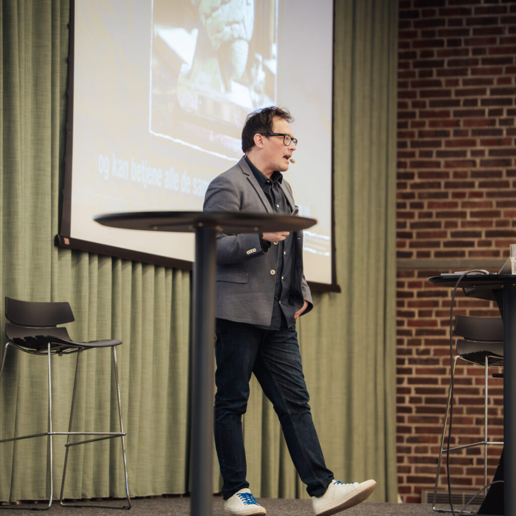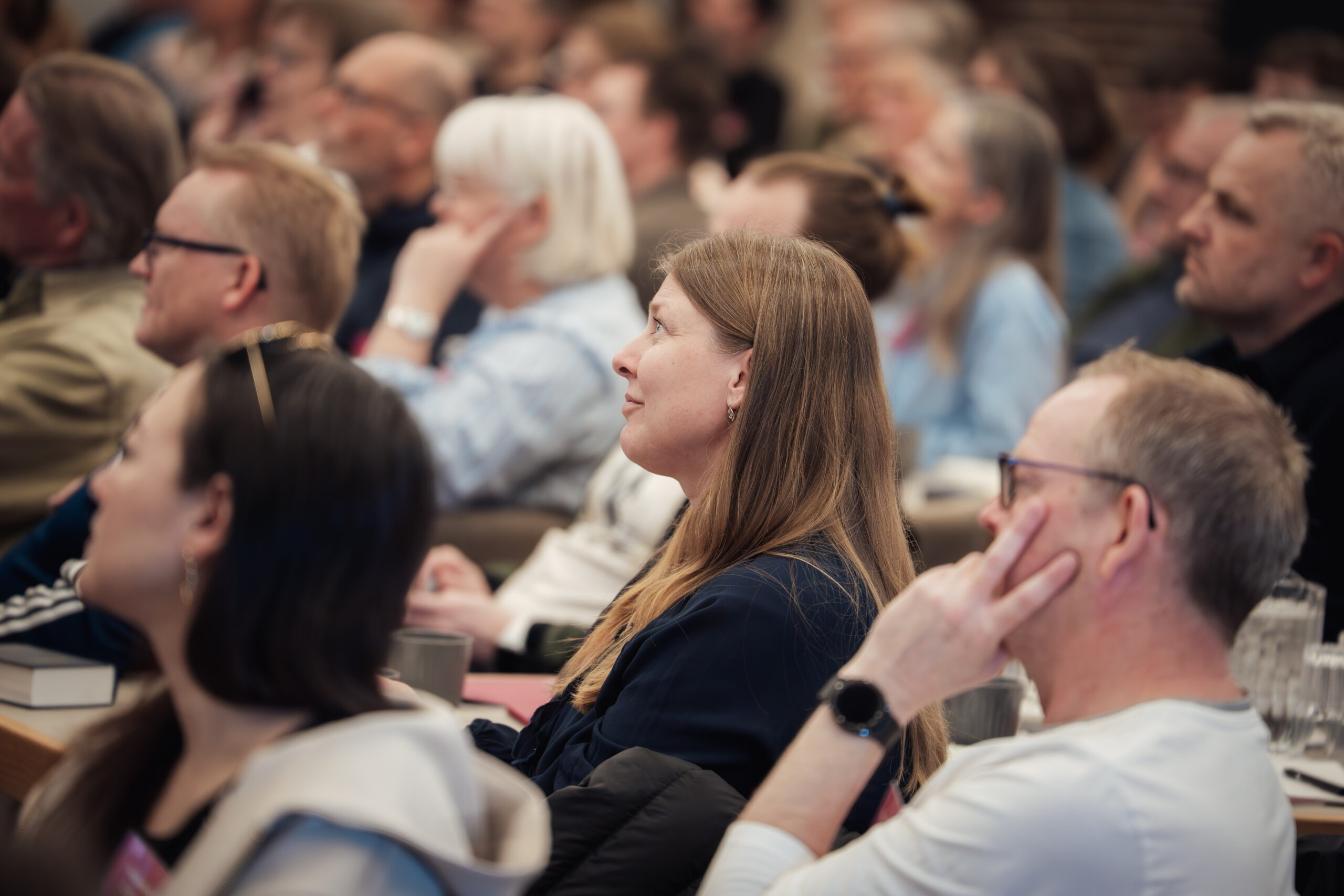 Svend Brinkmann satte fokus på, hvordan den menneskelige tænkning adskiller sig fundamentalt fra kunstig intelligens. Han argumenterede for, at vores tid kalder på dyb, kritisk og selvstændig tænkning – og ikke mindst på resonans – hvis vi skal kunne begå os i en fælles virkelighed. Når vi taler om AI, må vi ikke glemme, at det, der kan fremstå som meningsfuldt, reelt blot er mekanik og sandsynlighedsregning.