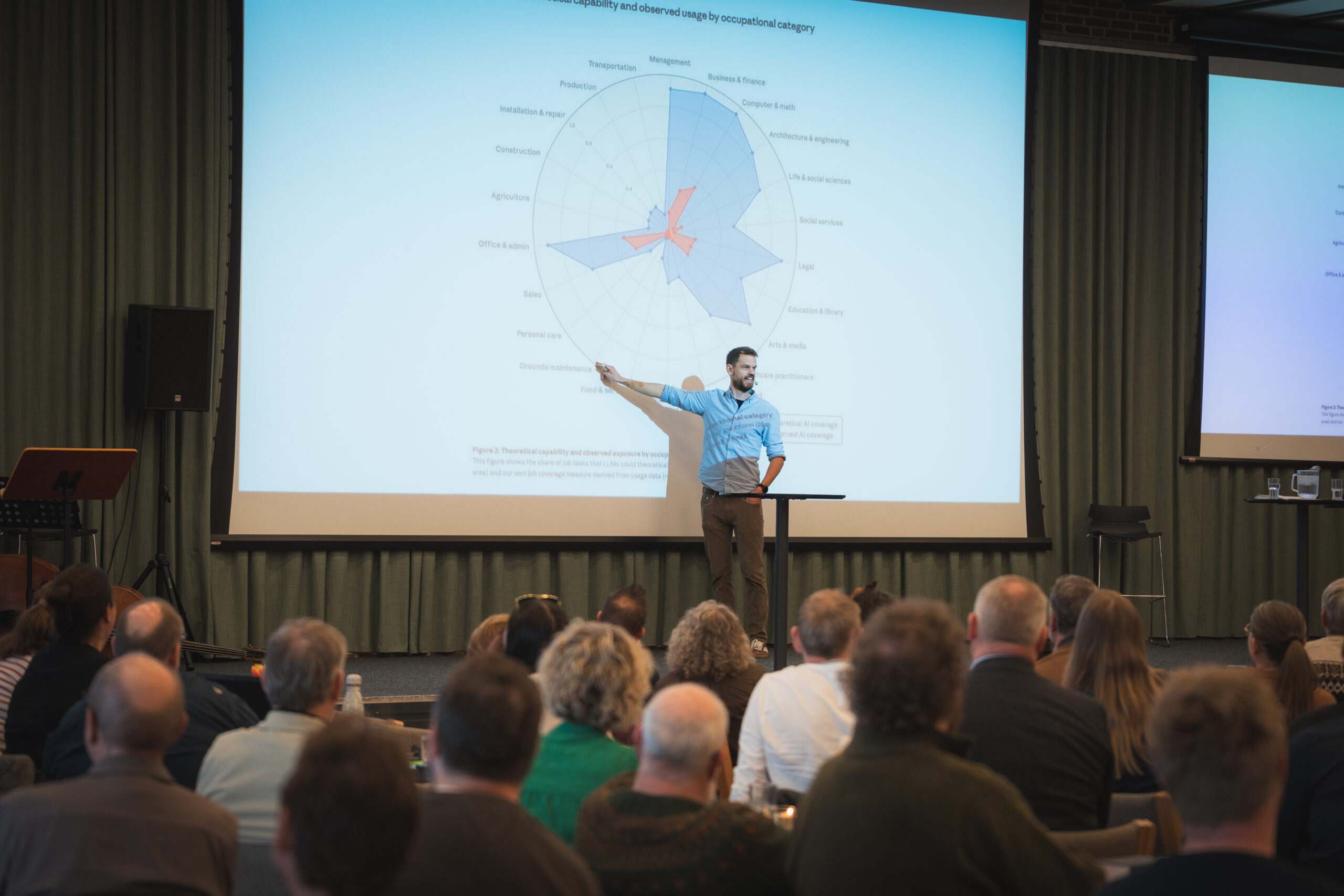 Nikolaj Sonne gav os et fascinerende indblik i AI’s tekniske muligheder og begrænsninger. Der var syn for sagen, da han gennem en række demoer viste, hvordan AI kan assistere os og udvide vores kompetenceområder i praksis – med alt fra enkel kørselsberegning til kunsten at lave sin egen sous-vide i en elkoger.